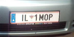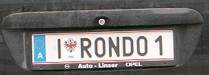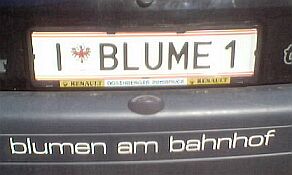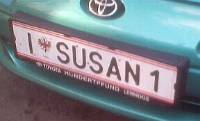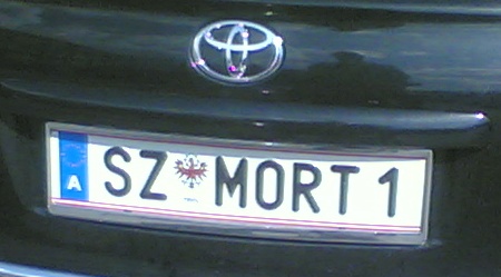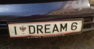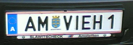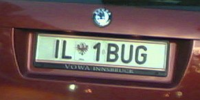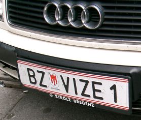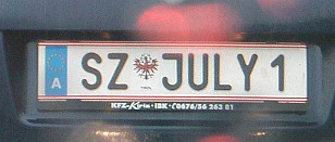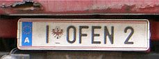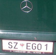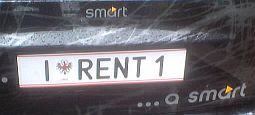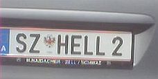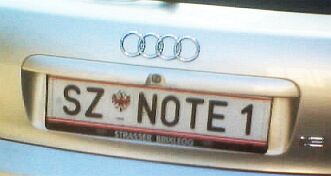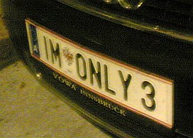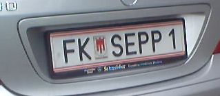 Many Austrian car owners like to personalize their vehicles with funny license plates which can be obtained for a duration of 15 years by paying EUR 228 (2014) into a (road safety fund. Since 2001 I have photographed quite a few of them. Below are the links to all those images. They contain names, professions, allusions, puns, dreams and sometimes an (unvoluntary) reference to some non-German abbreviation or meaning. A few images come from other sources (see *) and/or countries. You should take into acount the German pronounciation of the number six ;=) License plates where the numerals in the second part are in front of the alpha characters are unpaid/randomly generated. Have fun! (Just hover the mouse over the license plate names)