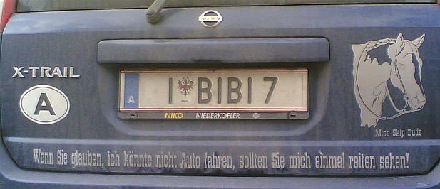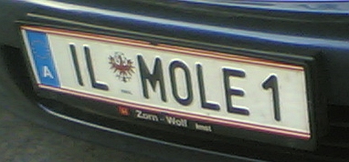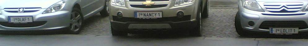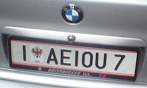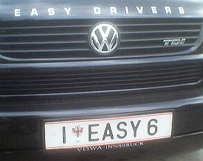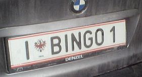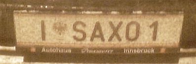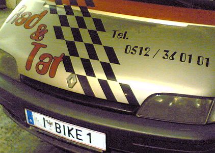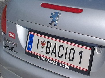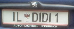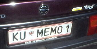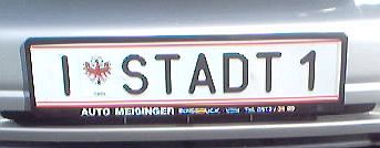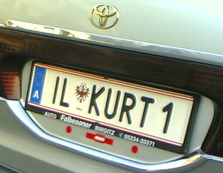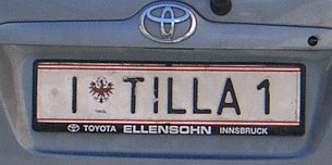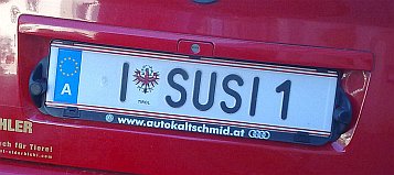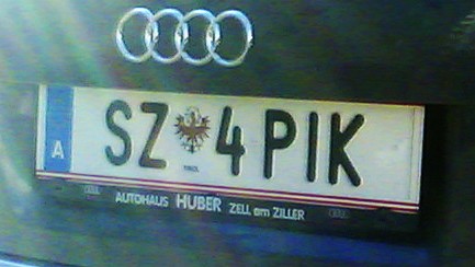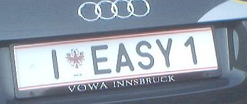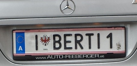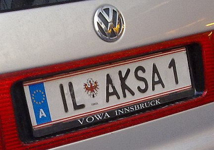 In Innsbruck heb ik sinds 2001 plaatjes gemaakt van met name Oostenrijkse "wens-kentekens" die men tegen betaling van EUR 228 (2014) in een (fonds voor de verkeersveiligheid voor een 15-jarige gebruiksduur kan verwerven. Hieronder vindt u dan ook de alfabetische links naar de foto's van namen, beroepen, (on)duidelijke bedoelingen, leuke afkortingen en onverwachte betekenissen in diverse andere talen zoals bijvoorbeeld IJslands, Nederlands, Latijn of Hebreeuws. Kentekens met een sterretje (*) zijn afkomstig van andere fotografen en/of andere landen. Houd rekening met de Duitse uitspraak van "6" ;=) Kentekens met - na het koppelteken - het getal vóór de letters zijn niet betaald/gewoon toeval. Veel plezier! (Gewoon de muis over de kentekens bewegen)