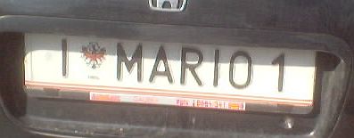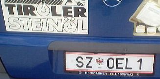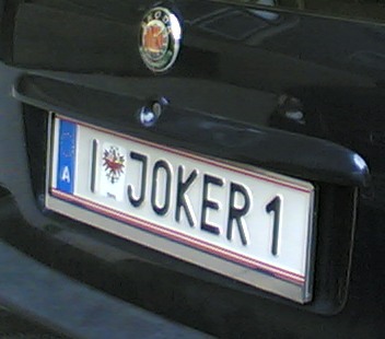 Der spaßige Hang so manches Österreichers nach persönlicher Gestaltung seines Automobils veranlasst(e) mich, seit 2001 inzwischen so einige dieser Kennzeichen, die man gegen Bezahlung von EUR 228 (2014) in einen (Verkehrssicherheitsfonds für die Dauer von 15 Jahren erwerben kann, abzulichten. Nachstehend finden Sie die Links zu allen diesen Fotos. Manche Kennzeichen haben eine Bedeutung nur in anderen Sprachen (z. B. Niederländisch, Latein, Englisch, Hebräisch, Isländisch). Eine Handvoll Kennzeichen stammt aus anderen Quellen (markiert mit *) und/oder anderen Ländern. Kennzeichen mit der Zahl am Anfang im zweiten Teil des Schildes sind unbezahlt, weil reiner Zufall. Viel Spaß! (Einfach die Maus über die Kennzeichen bewegen)